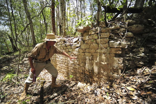 Image: A National Institute of Anthropology and History worker shows the remains of a building at the newly discovered ancient Maya city Chactun in Yucatan peninsula. ( INAH/Reuters )